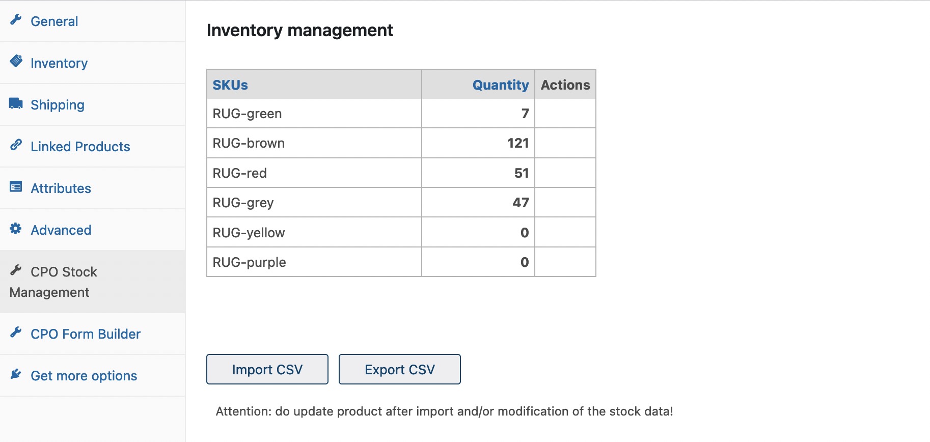 After you update the product a new tab "CPO stock management" will be shown: